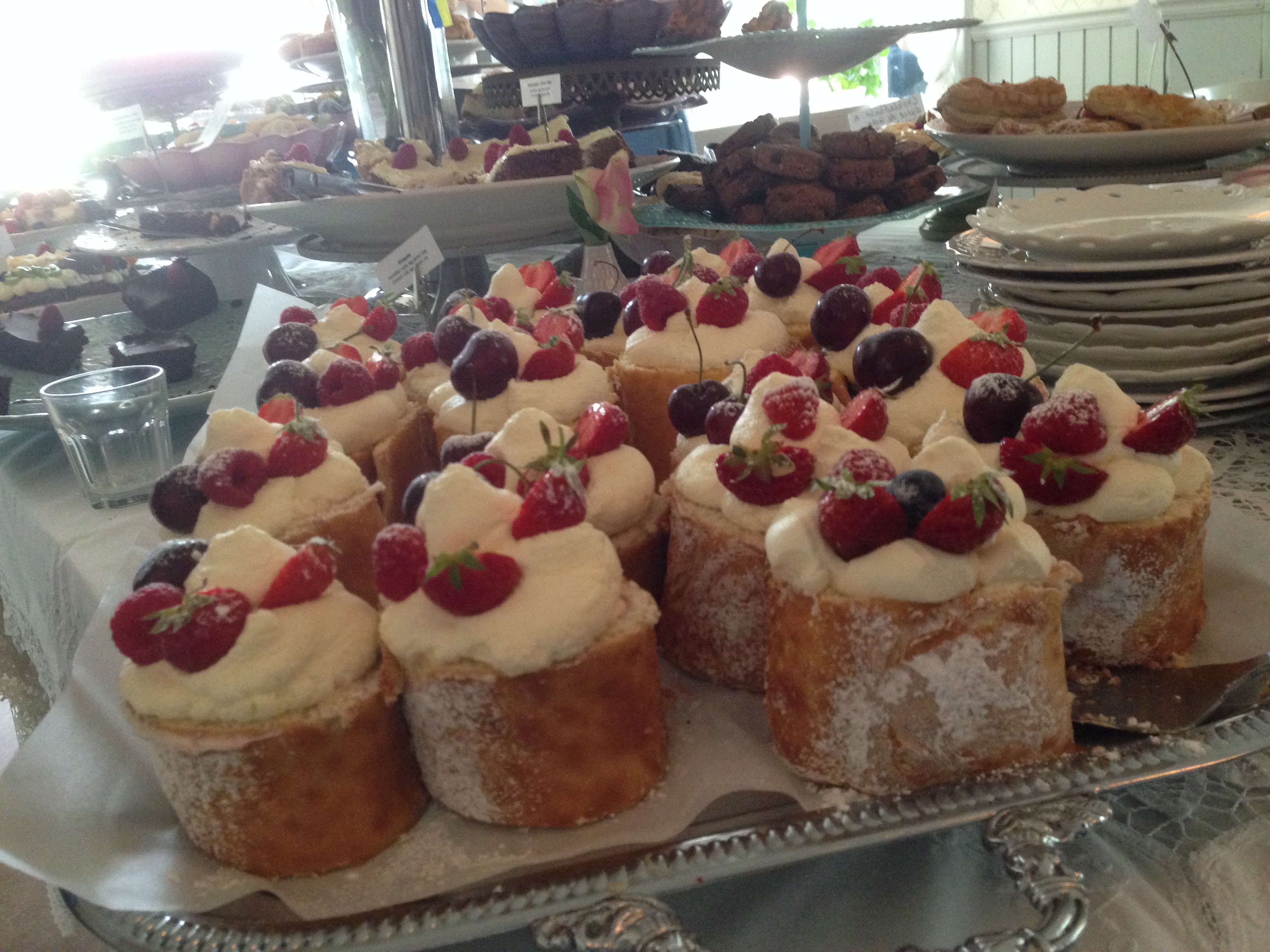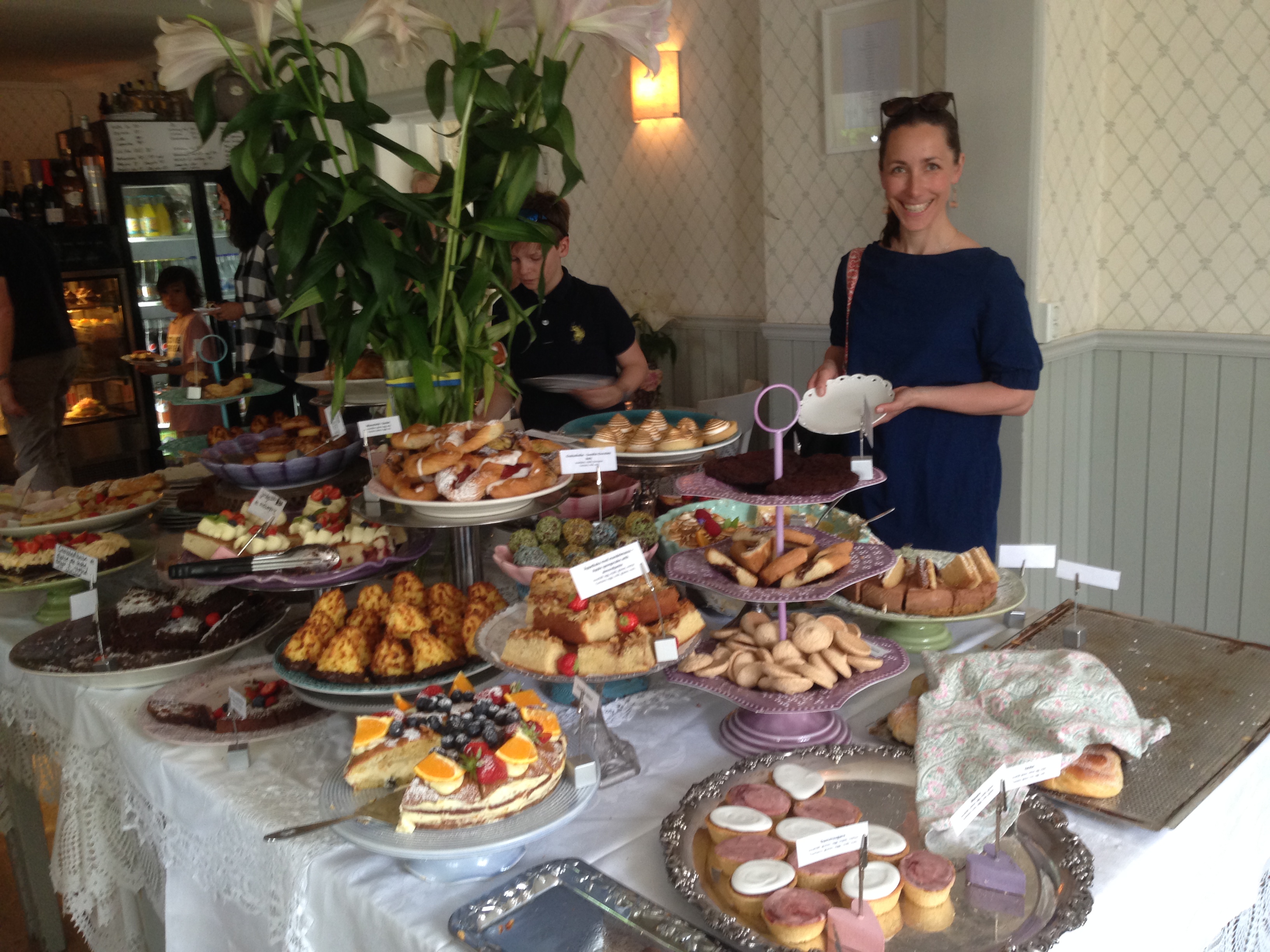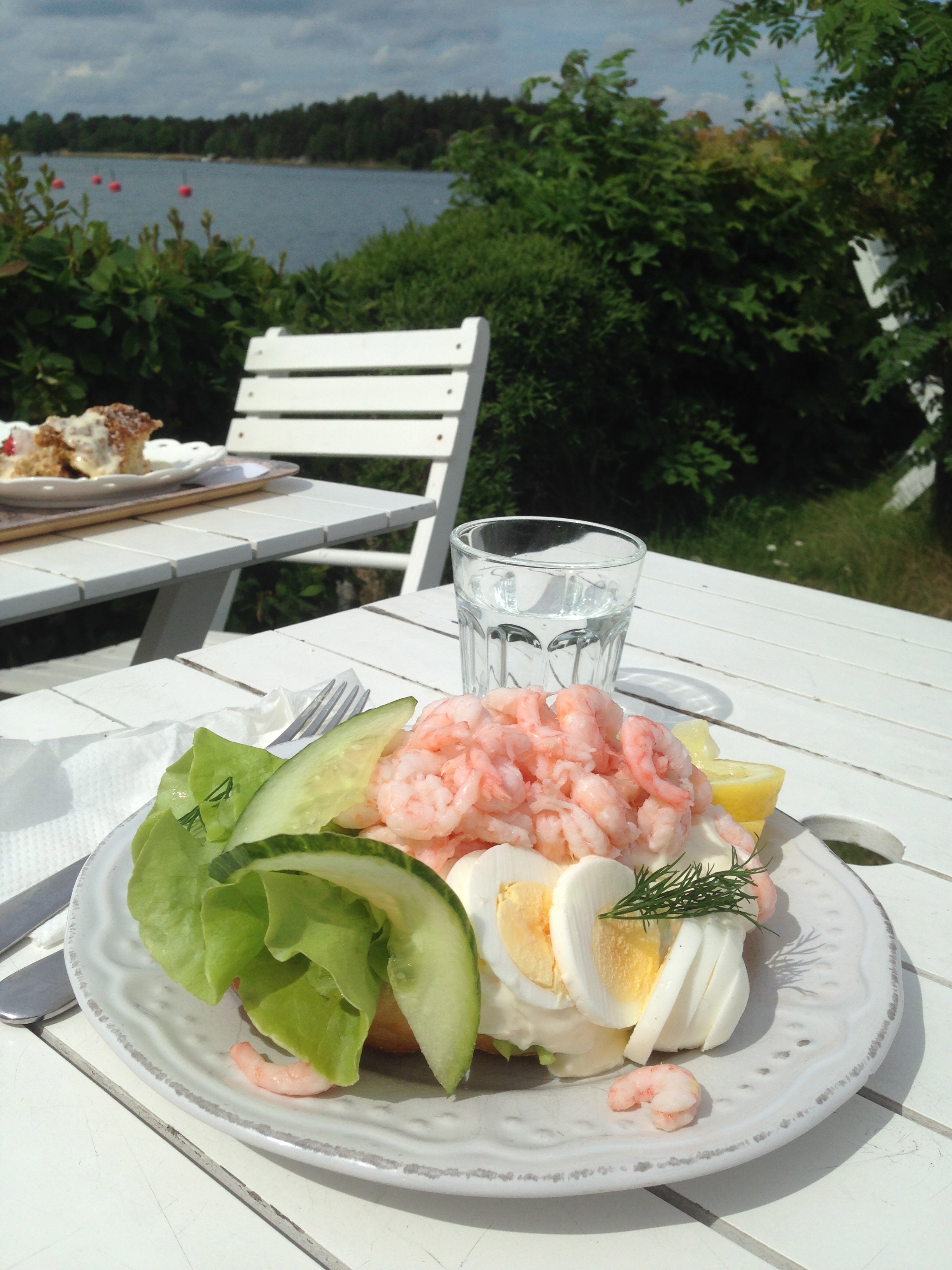 De hade en kakbuffé som var helt otrolig och vi satt precis vid havet på deras egen udde och uteservering och lyssnade på vågskvalp, fågelsång och småprat från de övriga fikagästerna. Helt ljuvligt! Jag beställde även deras räksmörgås med stora handskalade räkor eftersom vi inte ätit någon lunch. Där satt vi några timmar och bara njöt av lugnet och den goda maten/fikan. Jag kan varmt rekommendera ett besök till detta ställe om du befinner dig i Stockholmstrakten i sommar. Se bilderna nedan: