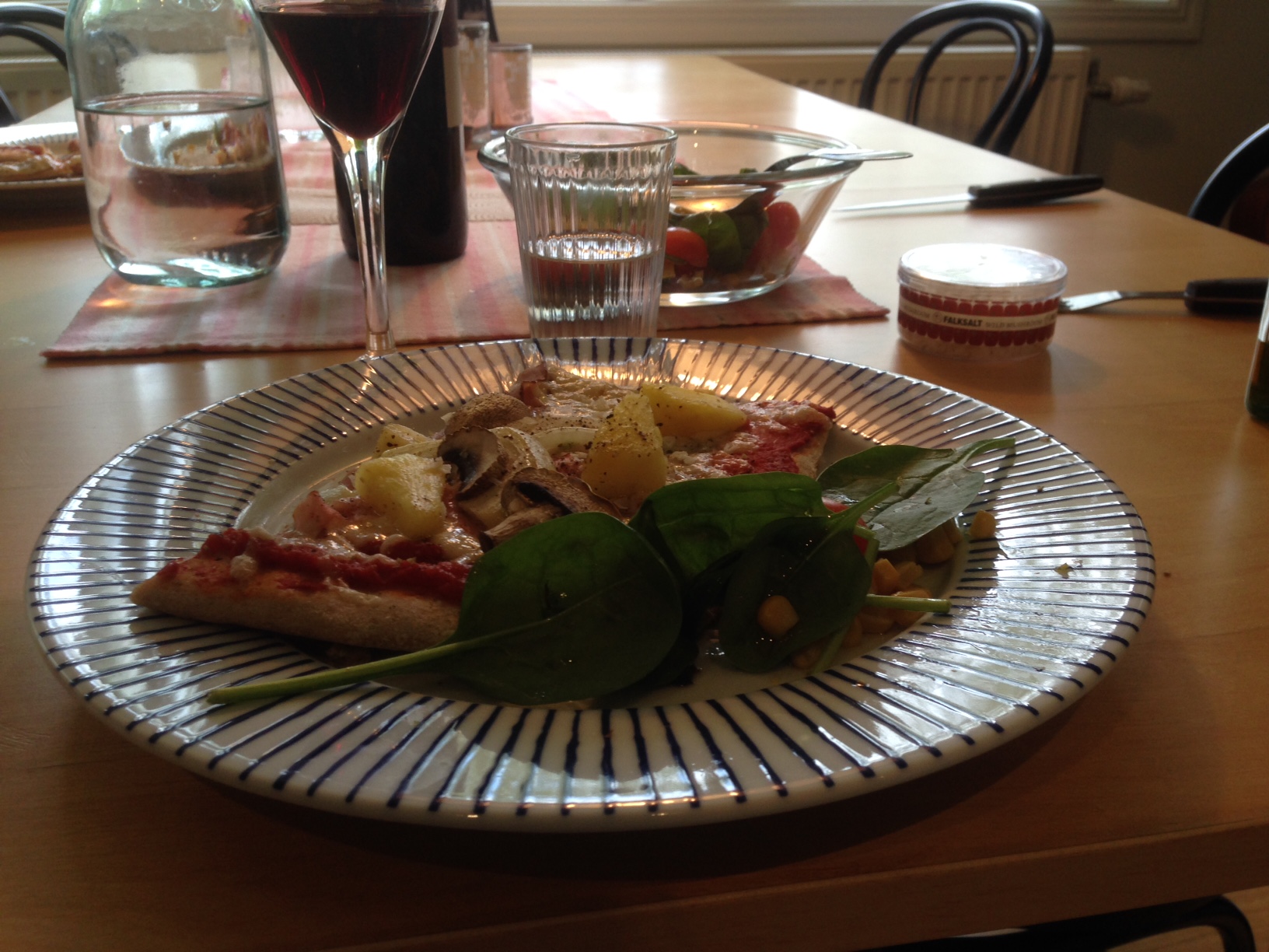 En god svensk ost med mycket smak är också en hemlighet till att lyckas med sitt pizzabak. En annan ingrediens är att äta den med folk man tycker om och ibland unna sig ett glas rött till pizzan som vi gjorde i söndags.